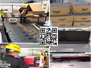 Los policías intervinieron un depósito, donde incautaron la mercancía que no se había declarado entre ellas 111 laptops de las marcas GAMER, HP, ASUS, TUF, GAMINS, y 72 laptops marca LENOVO PROFESIONAL no coincidían con las declaradas de mercancía.